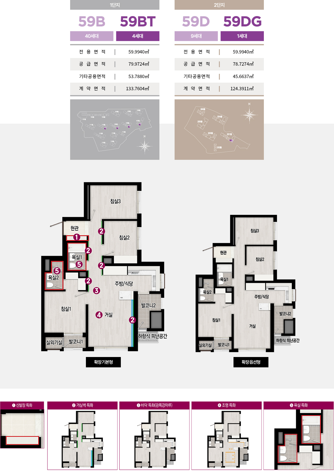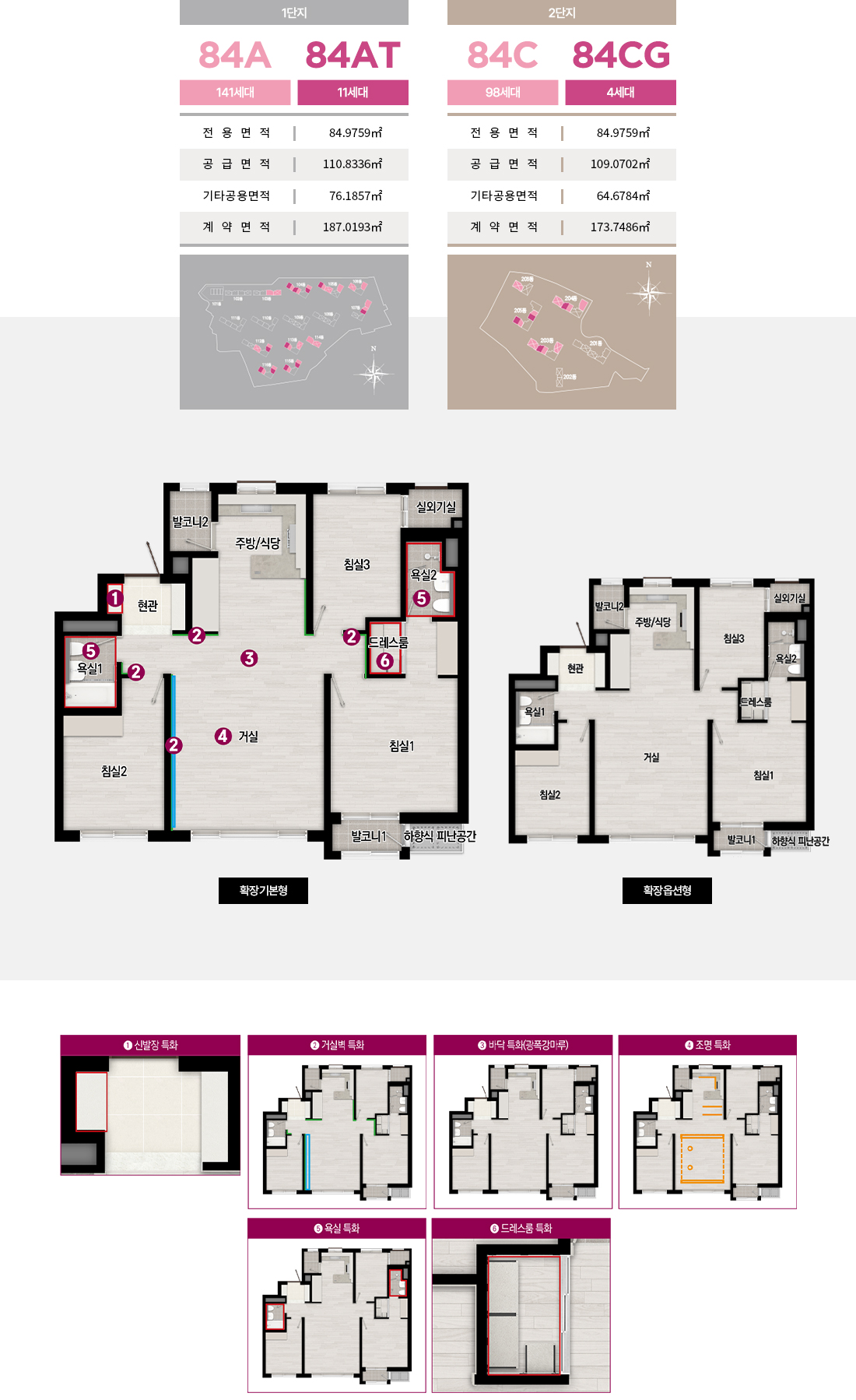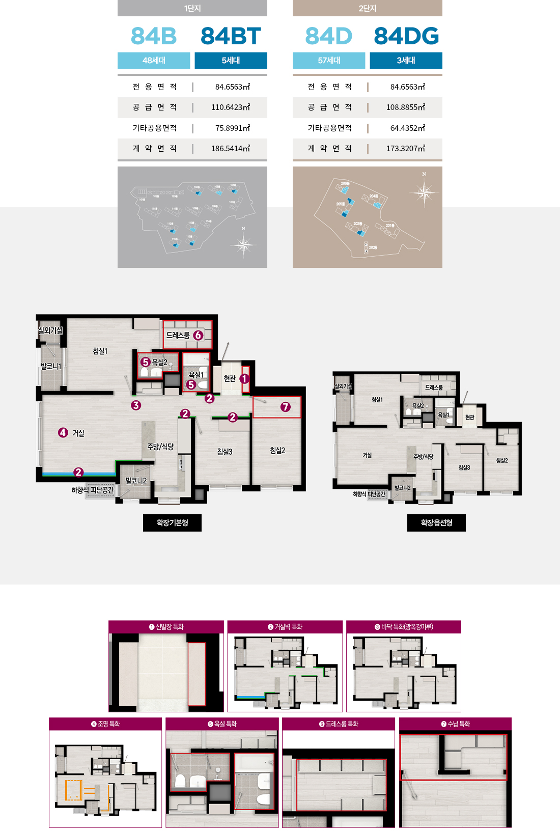 기본형과 확장형 시공의 경우 마감재가(각 실의 바닥재, 벽면 마감재) 다르니 자세한 사항은 견본주택에서 반드시 확인하시기 바랍니다.